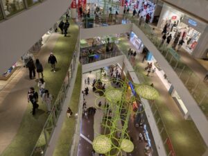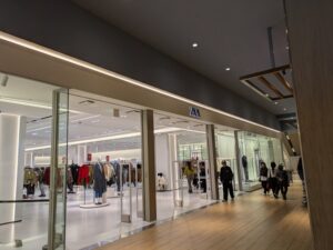昔はジャスコだった場所で、2009年に建て替えられて今の形になったそうです。紀伊國屋書店、島村楽器、ユニクロ・GU・無印、ZARA、ACTUS、niko and…、Francfranc、映画館など、だいたいのものは一通り揃っています。