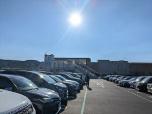 駐車場は広いので、まず車で来ても大丈夫だとは思いますが、かなり離れた場所になる可能性もあるので、駐車した場所を覚えておくとよい。
