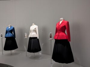 ディオールのBarスーツが赤白青で並ぶ。美と友情を象徴する、心震える光景。