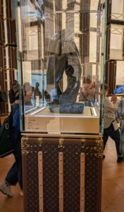 壁一面に積まれた85個のルイ・ヴィトンのトランク。その中には彫刻家オーギュスト・ロダンによる手の作品